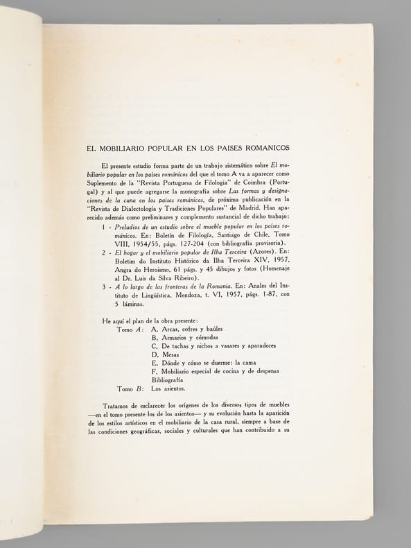 Tiré-à- part peu commun, contenant la partie "B" de son ouvrage "El Mobiliario popular". Cette partie B est relative aux sièges sous toutes leurs formes ("asientos"). Bon état (couv. un peu frottée)