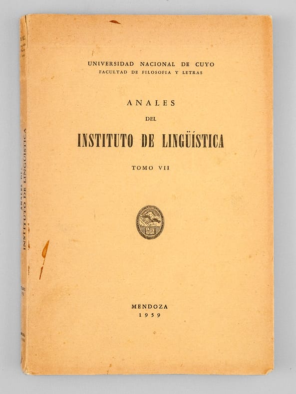 Tirada aparte de los Anales del Instituto de Lingüística Tomo VII, 1 vol. in-8 br., Universidad Nacional de Cuyo, Mendoza, 1959, 225 pp.