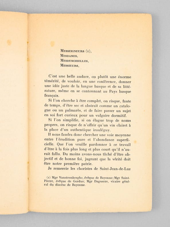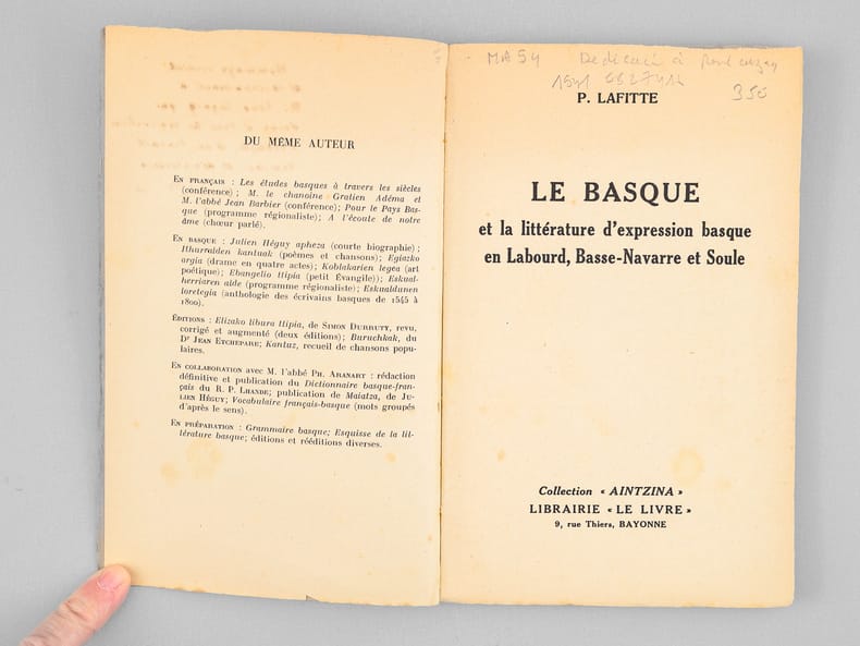 1 vol. in-12 br., Collection « Aintzina », Librairie « Le Livre », Bayonne, s.d. [1941 ] 96 pp.