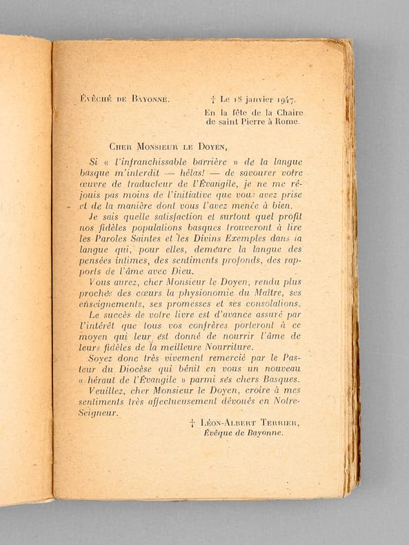 1 vol. in-12 br., Aphezak, Eskuararat Itzulia, Abbé L. Léon, curé-doyen, Ustaritz, Imprimerie Aubin, Ligugé, s.d. [ 1947 ]