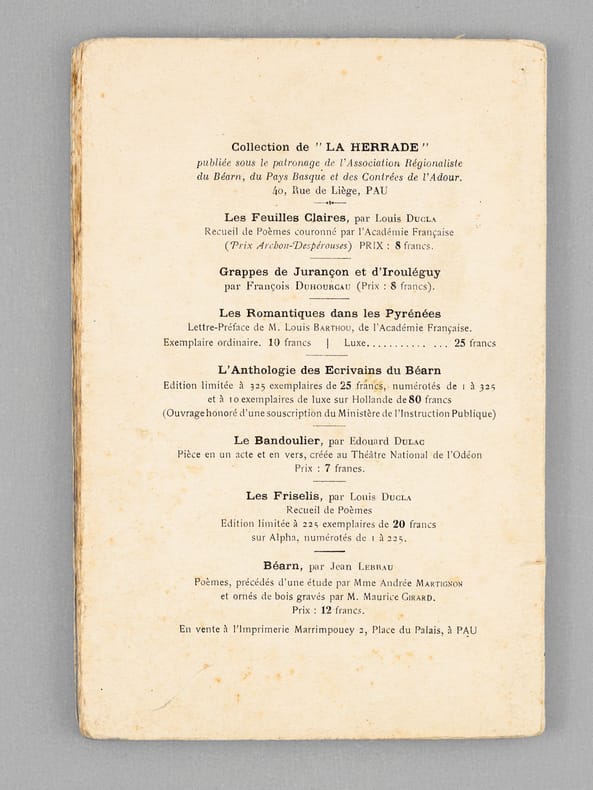 1 vol. in-8 br., Librairie Édouard Privat, Toulouse, 1940, Rappel du du titre et du contenu complet : Compte rendu du septième Congrès fédéral (R. Nougarède, p. 7) ; L'agriculture des Pyrénées françaises, caractères généraux (D. Faucher, p. 15) ; L'avenir agricole des Pyrénées (P. Thiery, p. 31) ; L'avenir de l'élevage aux Pyrénées (P. Pons, p. 45) ; L'arboriculture fruitière dans les Pyrénées (Directeurs et Professeurs, p. 55) ; Valeur économique de la forêt pyrénéenne (H. Gaussen, p. 71) ; La valeur économique de l'alpinisme et du ski dans les Pyrénées (J.-V. Parant, p. 99) ; Les conséquences économiques des pèlerinages pyrénéens (M. Lasserre, p. 105) ; Les industries électriques dans la région pyrénéenne (L. Babonneau, p. 117) ; Pierres et monuments des Pyrénées. L'influence des matériaux sur l'art en montagnes (G. Astre, p. 137) ; L'industrie thermale des Pyrénées (F. Caujolle, p. 179) ; Contribution à l'élaboration d'un plan général d'organisation du thermalisme pyrénéen (R. Deguiral, p. 215) ; Congrès de 1939 à Toulouse. Rapport général (H. Gaussen, p. 239) ; Les expériences d'Esbas (O. Bordères et H. Gaussen, p. 259)