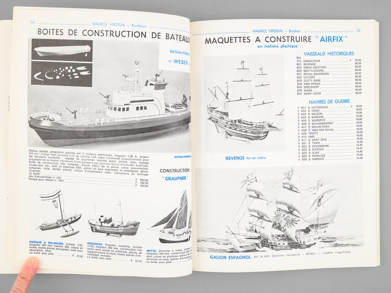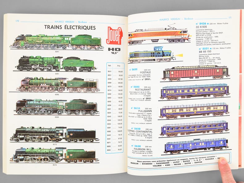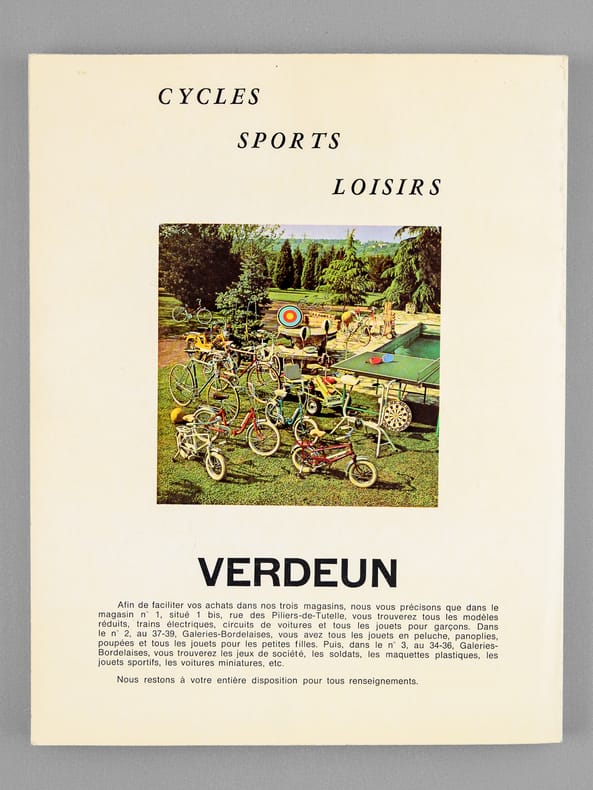 Très bon état pour ce catalogue, avec prix, du plus fameux magasin de jouets, maquettes et modèles réduits de Bordeaux. Maurice Verdeun (1929-2014), champion du monde de cyclisme amateur en 1950, avait transformé le magasin de vélo familial en une véritable institution bordelaise, qui a malheureusement fermé en 2019.