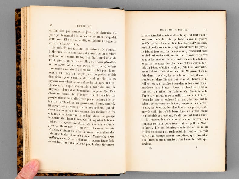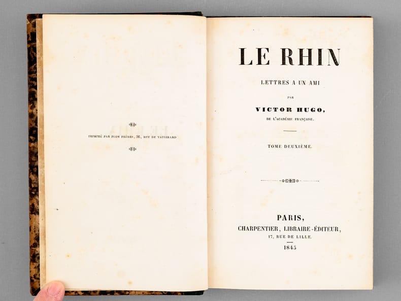 Bon état (ex libris ms. d'époque, rel. lég. frottée, bon exemplaire par ailleurs). L'édition originale du Rhin était parue en 1842, chez Delloye.