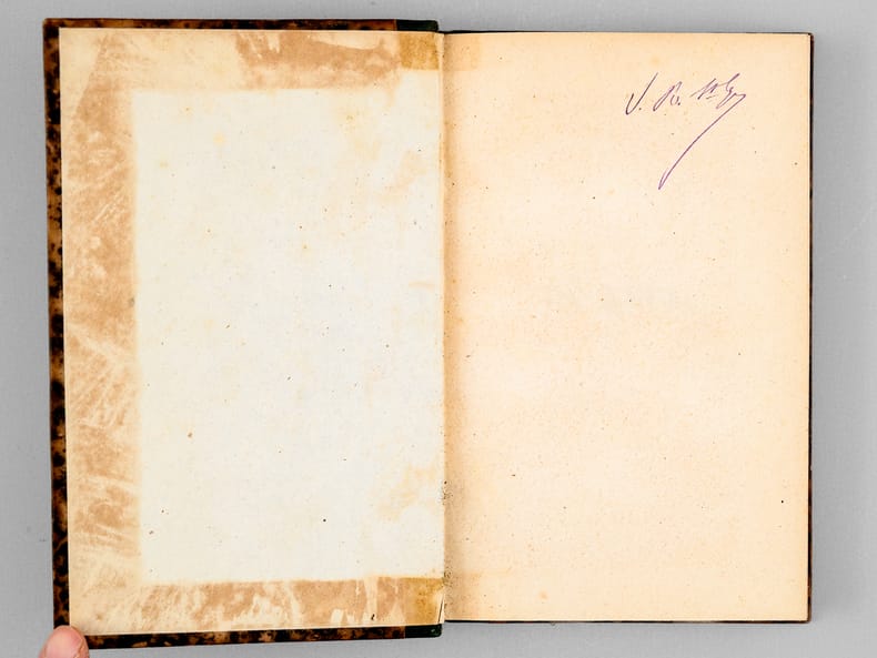 Remarquable exemplaire de l'édition originale, enrichi de nombreux commentaires interfoliés (et également de quelques annotations) établis par Ed. Hering, pharmacien à Barr (Bas-Rhin), comme le laisse supposer l'étiquette d'ex-libris. Le propriétaire a également daté son achat et ses frais de reliure de l'année 1889. Edmond Hering (1814-1893), pharmacien d'officine, fut également conseiller général et président d'Honneur du Club Vosgien. Ce commentateur s'exprime en français mais cite parfois longuement en allemand (ainsi il cite le Dr. Carus). Il propose en introduction 98 pages de résumé manuscrit ; nombre de ses commentaires évoquent le darwinisme (ainsi par exemple : "L'aveu que fait Quinet sur cette page fournit la preuve évidente que la doctrine de Darwin ne contient pas toute la vérité puisqu'elle est impuissante à expliquer l'origine des êtres"). Bon état (petits frott. en dos et plats, très bon état par ailleurs) pour cet exemplaire unique.