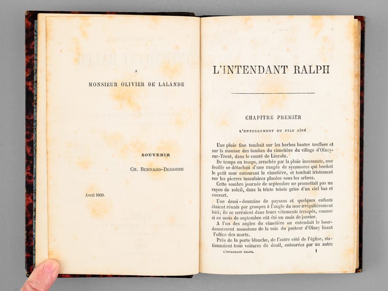 Bon état pour cette édition en français de "Ralph the Bailiff and C." (1862). L'auteur, Mary Elizabeth Braddon (1835-1915) était une femme de lettres britannique, devenue célèbre pour ses romans policiers. Edition d'époque, assez peu courante désormais.