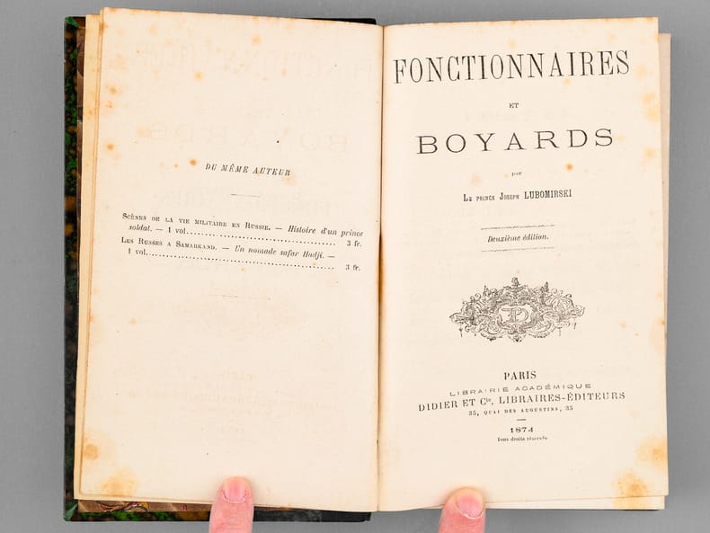 Bon état pour ce roman dont l'action se situe dans la Russie tsariste. L'auteur, le prince Joseph Maximilien Wladislas Marien Lubomirski était d'origine polonaise. Installé en France, et marié à une française, il est l'auteur de divers ouvrages romanesques et historiques. Il est enterré au Cimetière du Père Lachaise (Paris).