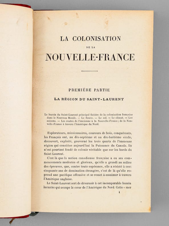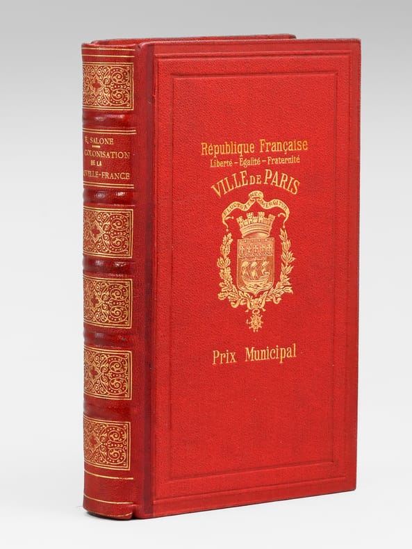 Volume in 8°(15cm X 22,2 cm.) , reliure percaline rouge avec dos à 5 nerfs et des caisson ornés de fins motifs dorés, XII + 467 pages, une carte du CANADA sur double page en début d’ouvrage, abondante table des matières (très détaillée) sur 5 pages.Il s’agit d’un livre de prix (de la Ville de PARIS).Bon état (aucun problème aux mors ni au dos) mais quelques rares marques d’usage sur les plats de la couverture et une discrète trace de mouillure colorée en rouge sur la tranche verticale [319]