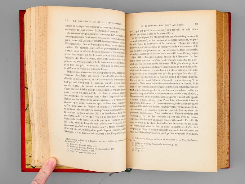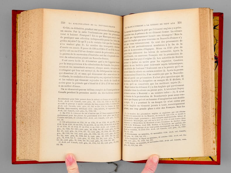 :: EDITION ORIGINALE (reprint en 1970, augmentée d'un Index, au Boréal Express). :: Cartonnage de l'époque, demi-bougran rouge à coins. Ex-libris et cachets du Collège Marie-Anne, etc. Bon exemplaire de travail, solide.
