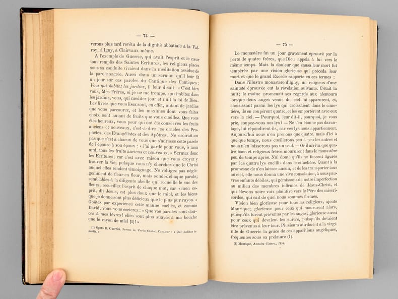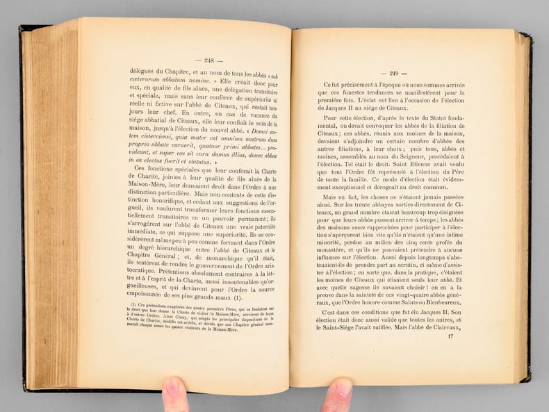 Couverture de papier gris-chiné défraichie, dos cassé ; auréole d'humidité ; titre imprimé en rouge et noir orné d'un blason ; manque de papier au dos ; 4ffnch (faux-titre, titre)+VII (préface)+627pp ; illustré d'une photographie HTen frontispice, d'une carte volante et d'un plan ; Important ouvrage sur l'histoire de cette importante abbaye, depuis sa fondation en 1127 ; avec les pièces justificatives et un bon index des noms cités ; malgré l'état de la couverture, l'intérieur est bien complet et assez frais, avec de rares rousseurs