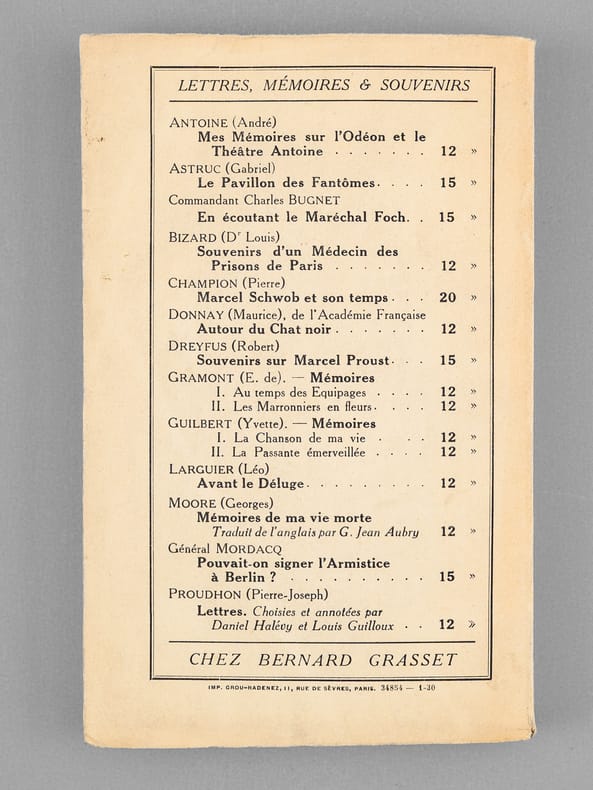Envoi ms. de l'auteur, 1 vol. in-12 br., Grasset, 1930, 140 pp.