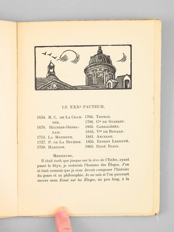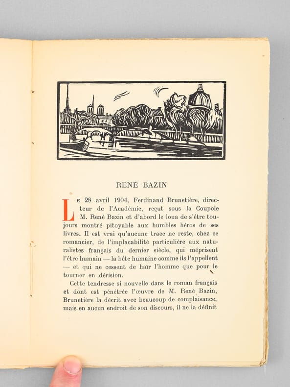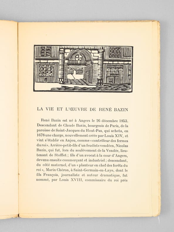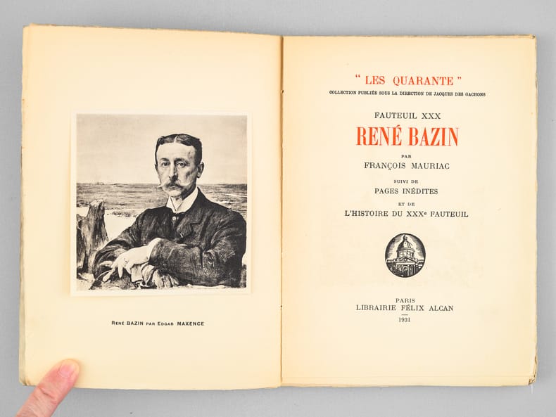 Bon état. Avec un carte de visite de René Bazin, datée du 3 janvier 1924, avec l'annotation "avec ses remerciements et ses meilleurs voeux".