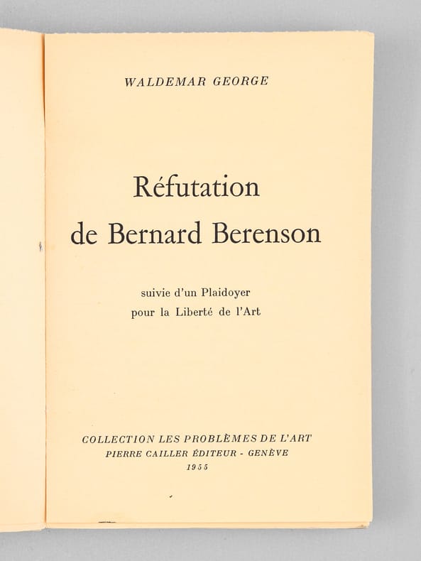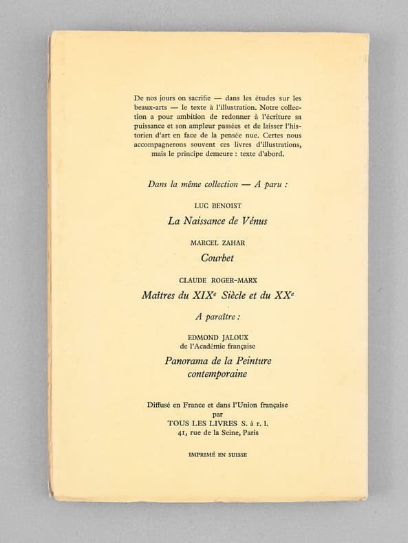 Envoi ms. de l'auteur, coll. les Problèmes de l'Art, Pierre Cailler éditeur, Genève, 1955, 157 pp.
