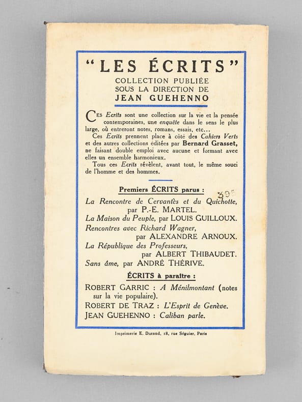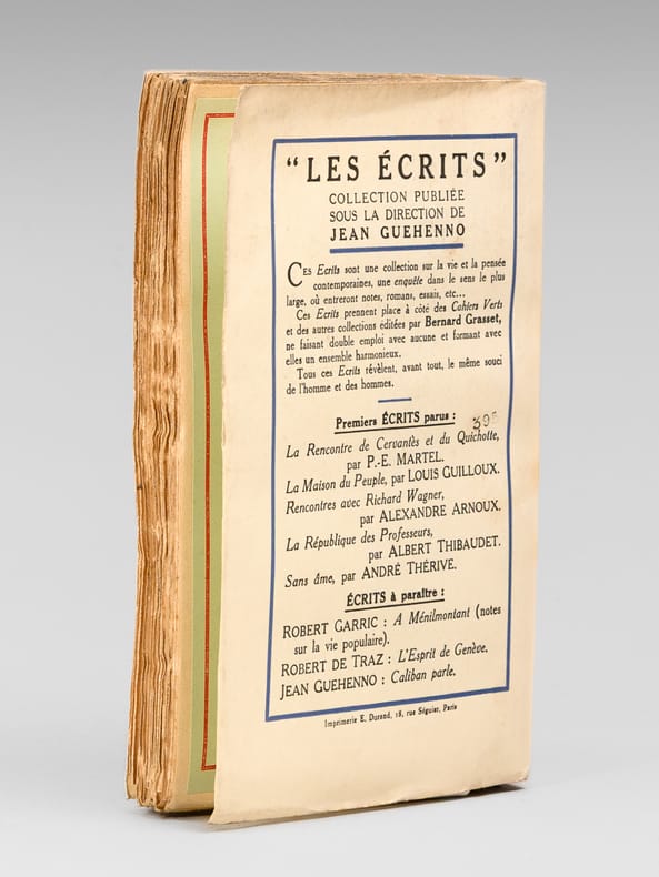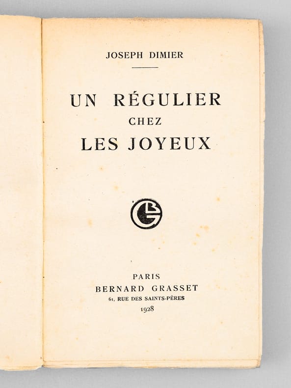 1 vol. in-12 br., Bernard Grasset, Paris, 1928, 259 pp.