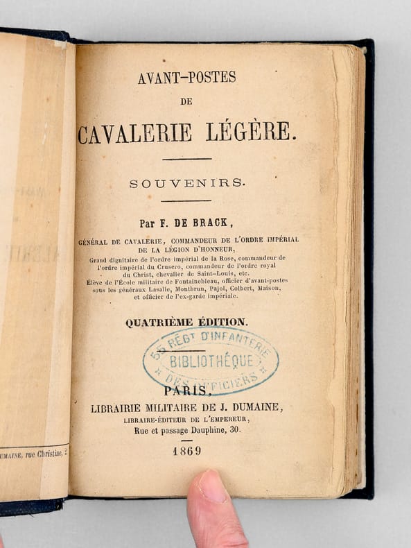 Quatrième édition, 1 vol. petit in-12 cartonnage éditeur restauré, plaches et ill. noir et blanc, Librairie Militaire de J. Dumaine, Paris, 1869. 488 + 13 pp.