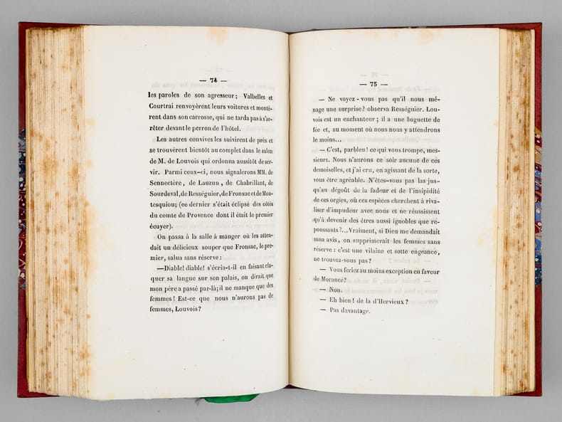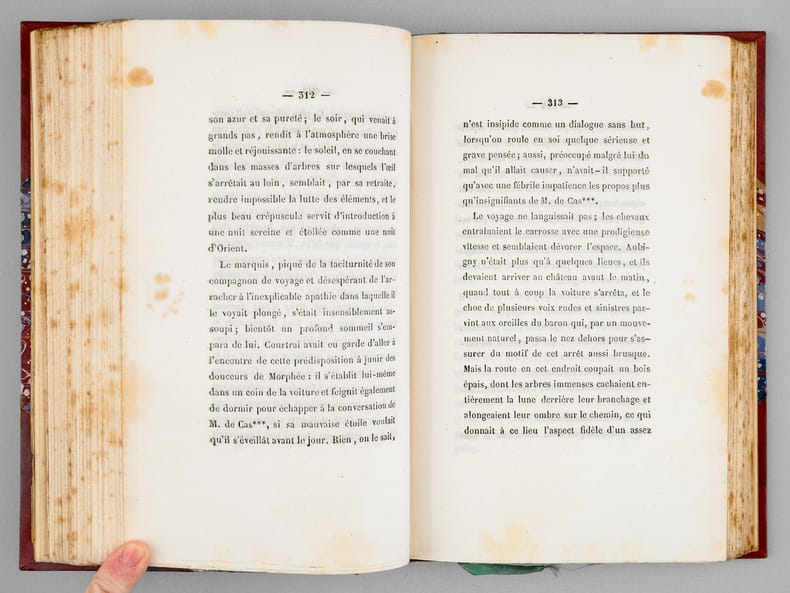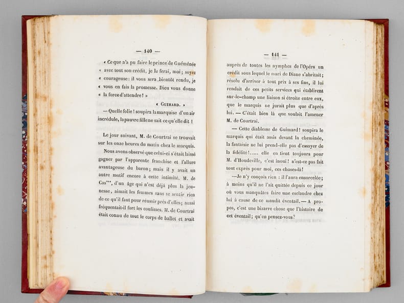 1 vol. in-8 reliure de l'époque bradel demi-percaline à coins brune, tête dorée, Publication de Charles Le Clere, édit.-libr., À la Librairie spéciale pour les cabinets de lecture, Paris, 1844, 1 f., 371 pp., 1 f., 329 pp. et 1 f. n. ch.