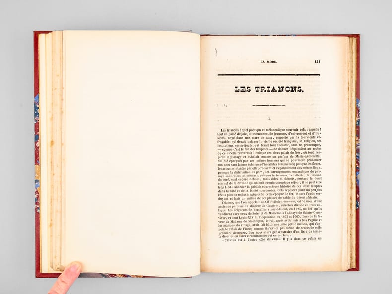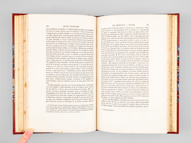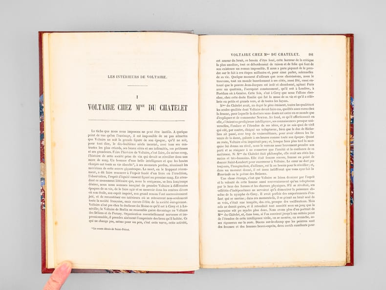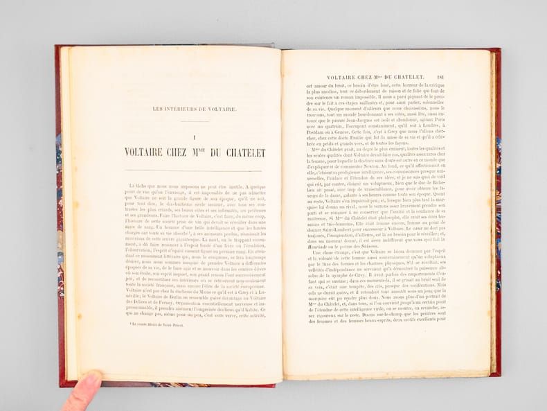1 vol. in-8 reliure de l'époque bradel demi-percaline à coins brune, tête dorée, [ Contient : ] Voltaire chez Madame du Châtelet - Châteaux Princiers. Bagatelle - Beaux-arts. La Chapelle de l’Eucharistie - Beaux-arts. Restauration des vitraux de la Ste Chapelle - Les Écrivains : Buffon et son château de Montbard - Les Originaux : Favart - Madame Élisabeth - Théodora, s.d. (circa 1845-1860 ]