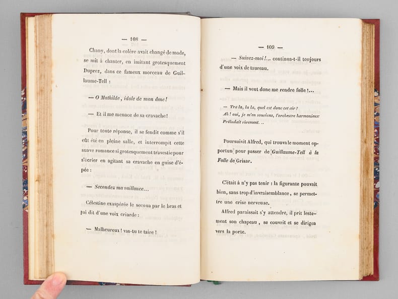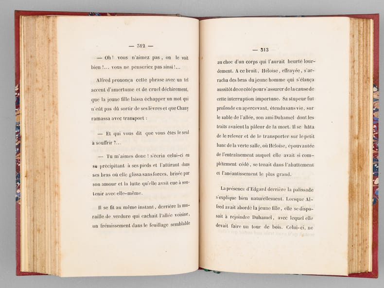 Bon exemplaire de ce recueil provenant de la propre bibliothèque de l'auteur, l'écrivain normand Gustave Desnoireterres (1817-1892). L'ouvrage contient 2 histoires : Héloïse Dubois et Madame de Veaucelles. Le premier récit se termine sur une évocation d'Indiana de George Sand, lu par l'héroïne. L'ouvrage est dédié à Madame Ancelot. Bon exemplaire de l'édition originale