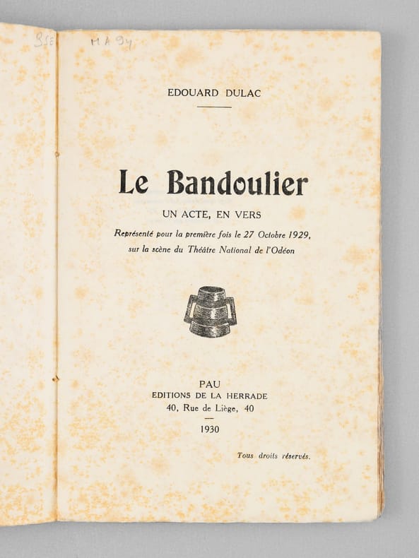 1 vol. in-12 br., Editions de la Herrade, Pau, 1930, 62 pp.
