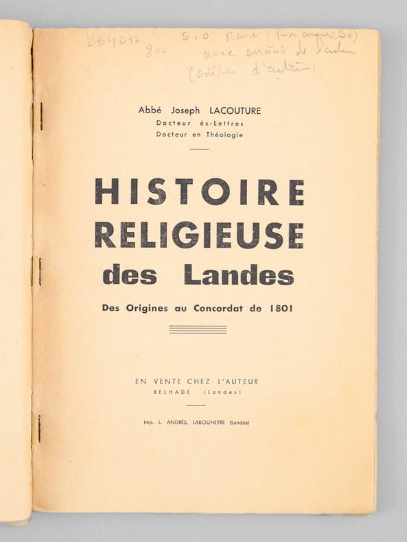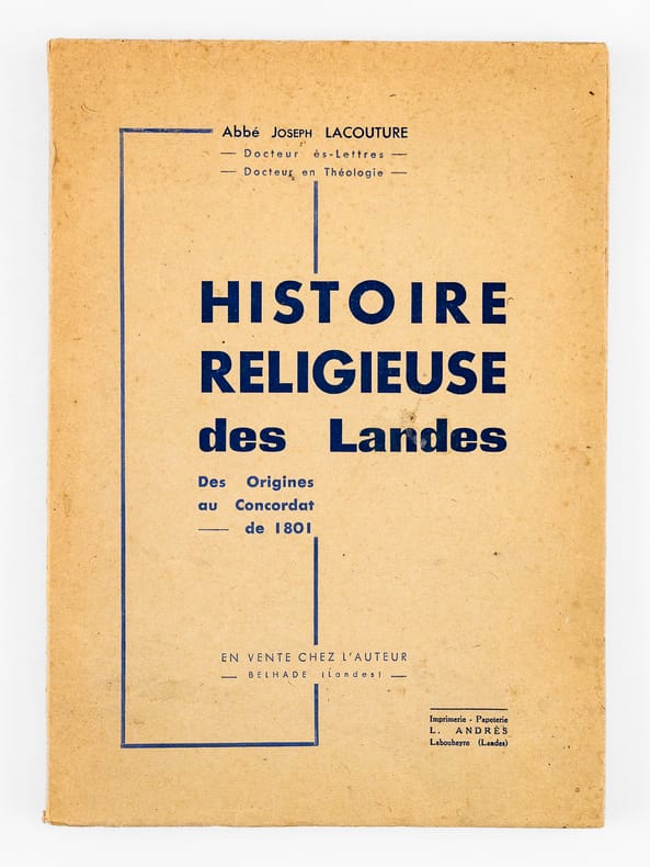 1 vol. in-8 br., En vente chez l'auteur, Belhade (Landes), Imp. L. Andrès, Labouheyre (Landes), 1940, 116 pp.