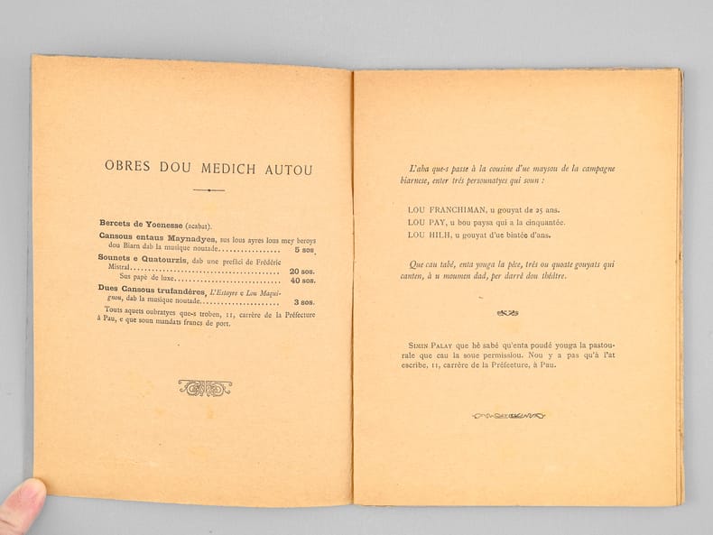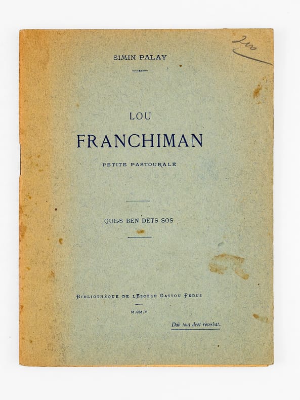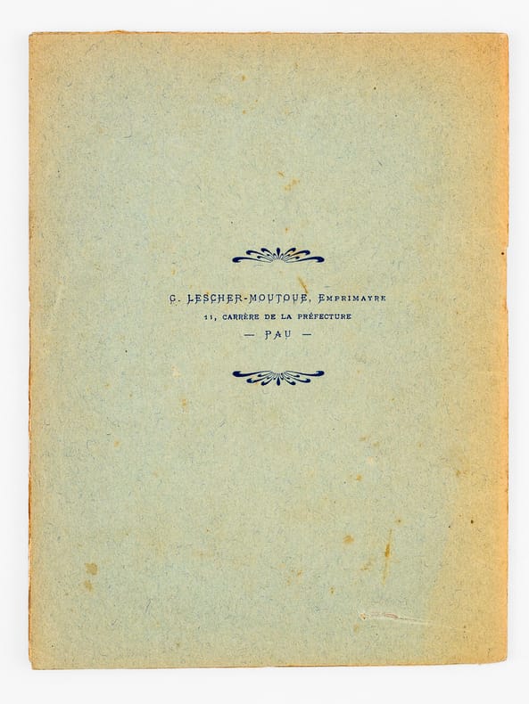 1 brochure in-12, Bibliothèque de l'Escole Gastou Febus, emprimade per Lescher-Moutoué, Pau, 1905, 23 pp.