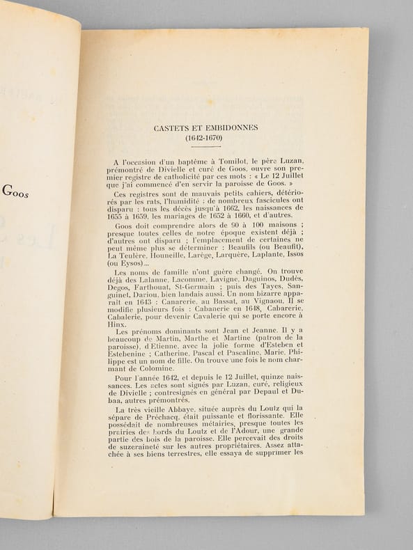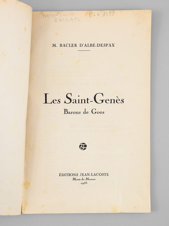 Monographie peu commun. De la bibliothèque du professeur René Cuzacq, qui a, conformément à son habitude, corrigé certains passages au stylo. Etat très satisfaisant (qq. annotations, anciennes mouill., bon état par ailleurs).