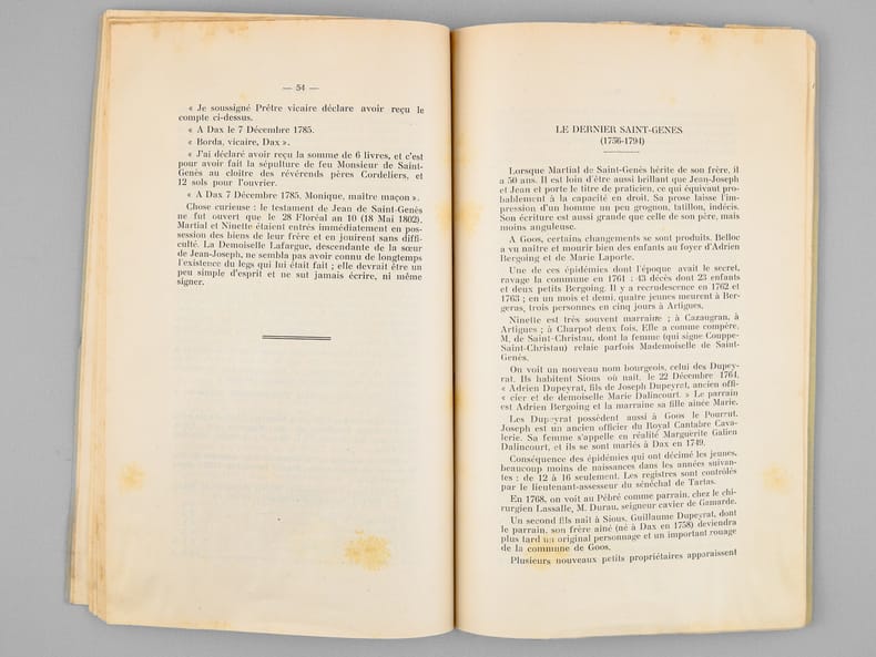 1 vol. in-8, Éditions Jean-Lacoste, Mont-de-Marsan, 1958, 70 pp.