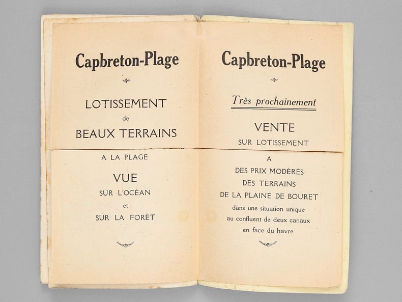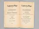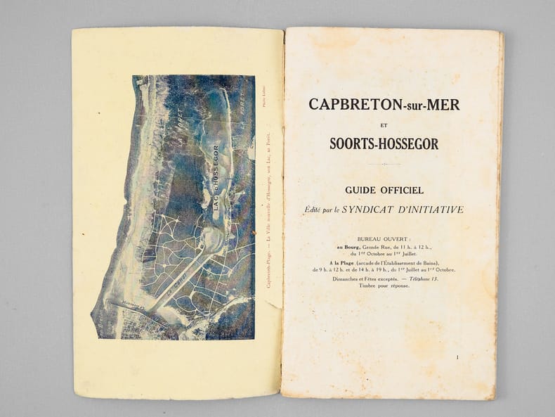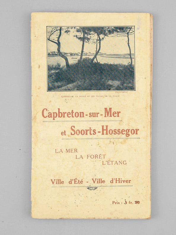 Rare exemplaire de cet ancien guide, publié vers 1925 par les Syndicat d'Initiative de Capbreton et d'Hossegor. Il s'agit probablement de l'un des tous premiers guides publiés pour ces deux communes balnéaires du sud des Landes. Etat très satisfaisant (couv. frottée avec petits manques en dos, bon état intérieur).