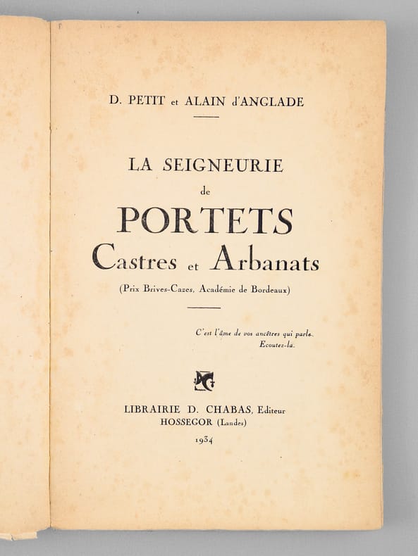 1 vol. in-8 br., Librairie D. Chabas, Hossegor, 1934, 127 pp.