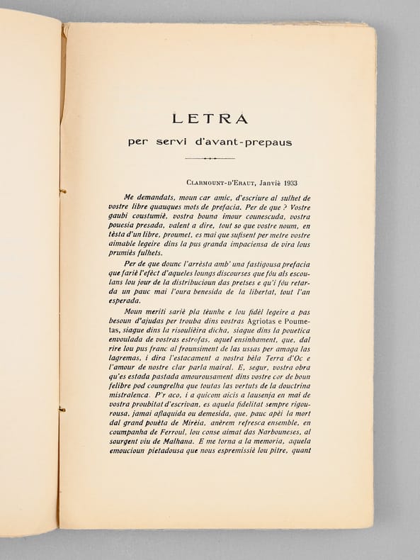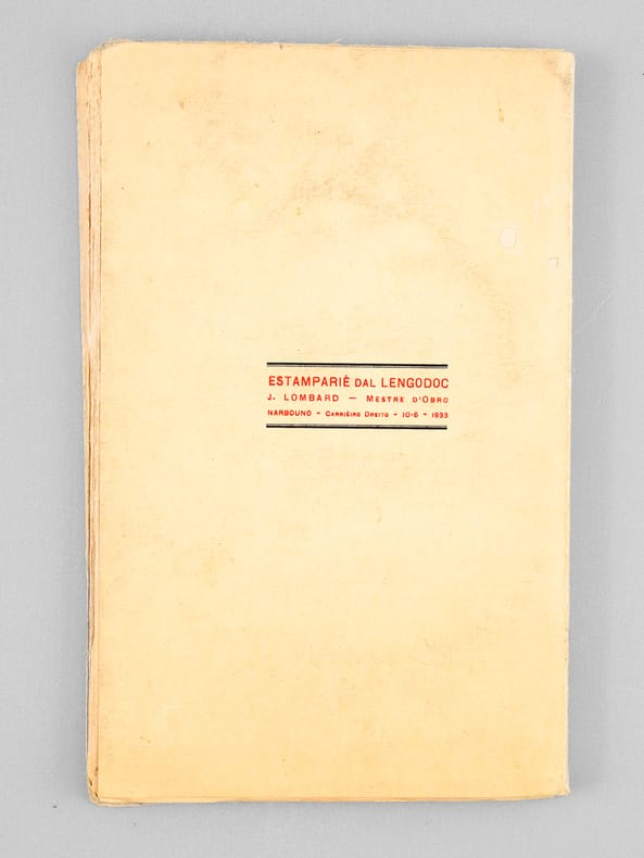 1 vol. in-8 br., Estamparié dal Lengodoc, , Narbonne, 1933, 141 pp.
