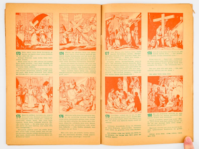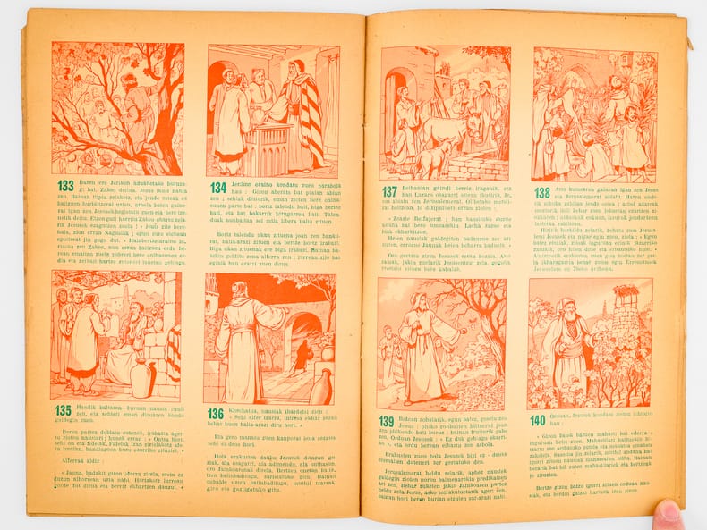 Rare exemplaire de la traduction basque, par l'abbé Arradoy, de la belle vie de Jésus rédigée par l'abbé Courtois. Etat satisfaisant (accroc en couv., bon état intérieur). Peu commun
