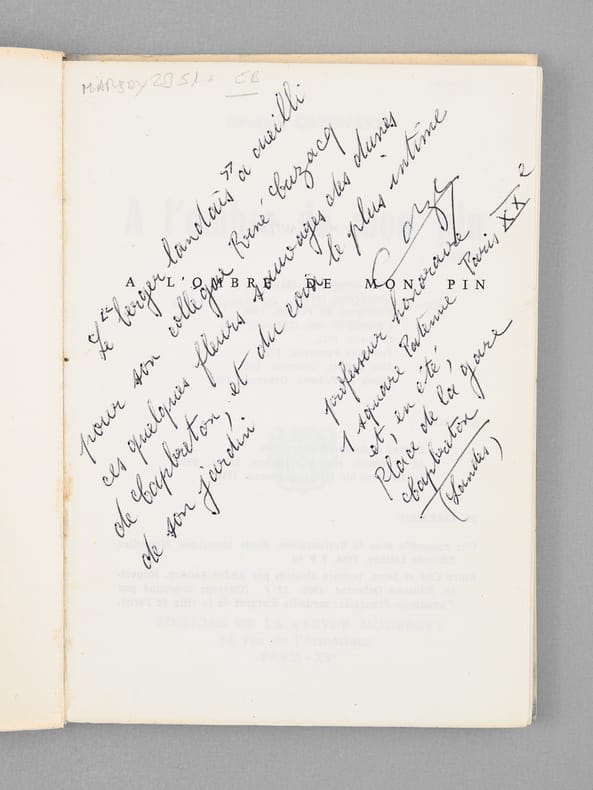 Né à Hanoï en 1905 dans « une des plus anciennes familles de Capbreton », Georges Cazenave est l'auteur d'une oeuvre poétique plusieurs fois récompensée. Bel envoi de l'auteur : "Le berger landais a cueilli pour son collègue René Cuzacq ces quelques fleurs sauvages des dunes de Capbreton, et du coin le plus intime de son jardin". Comme à son habitude, René Cuzacq a annoté son exemplaire au stylo. Bon état (qq. annotations)