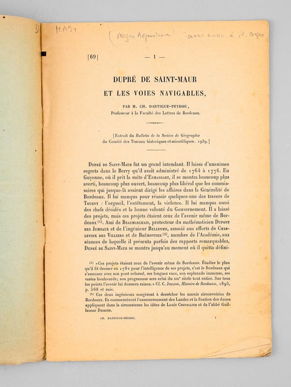 1 brochure in-8, Extrait du Bulletin de la Section de Géographie du Comité des Travaux historiques et scientifiques 1939, Imprimerie Nationale, Paris, 1940, 18 pp.