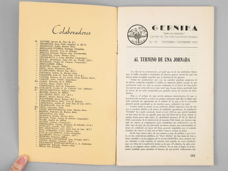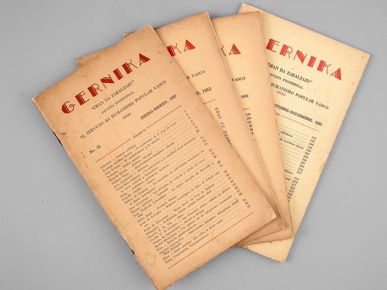 4 vol. in-8 br., Gernika "Eman da Zabalzazu". Revista trimestrial al servicio del Humanismo Popular Vasco [ N° 22, 23, 24, 25 : Année 1953 Complète ] N° 22 : Enero-marzo 1953 ; 23 : Abril-Junio 1953 ; 24 : Julio-Septiembre 1953 ; 24 : Octubre Diciembre 1953