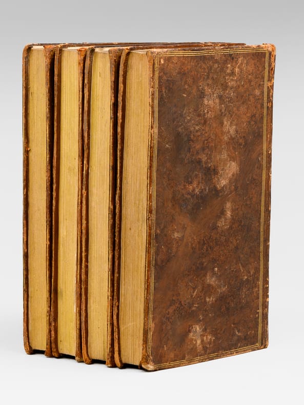 Traduite du grec par Pierre-Charles Levesque, 4 vol. in-8 reliure de l'époque plein veau raciné, dos lisse orné, J.B. Gail, P.F. Aubin, Paris, L'An IVme de la République, 1795, 1 f., XXXVIII pp., 1 f., 374 pp. et 1 f. n. ch. ; 1 f., 363 pp. et 1 f. n. ch. ; 1 f., 333 pp. ; 1 f., 337 pp.