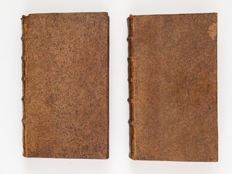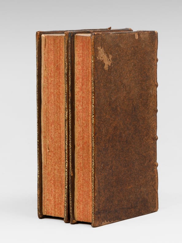 2 vol. in-12 reliure de l'époque pleine veau brun, dos à 5 nerfs orné, Chez Charles Osmont, Paris, 1699, 28 ff. (dont titre gravé et titre), 424 pp. et 4 ff. n. ch. (privilège et 2 ff. insérés : pp. 213-214 et 177-178) ; 6 ff. (dont titre gravé et titre), 428 pp.