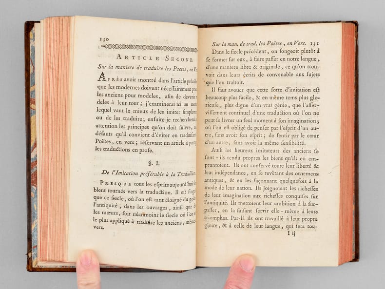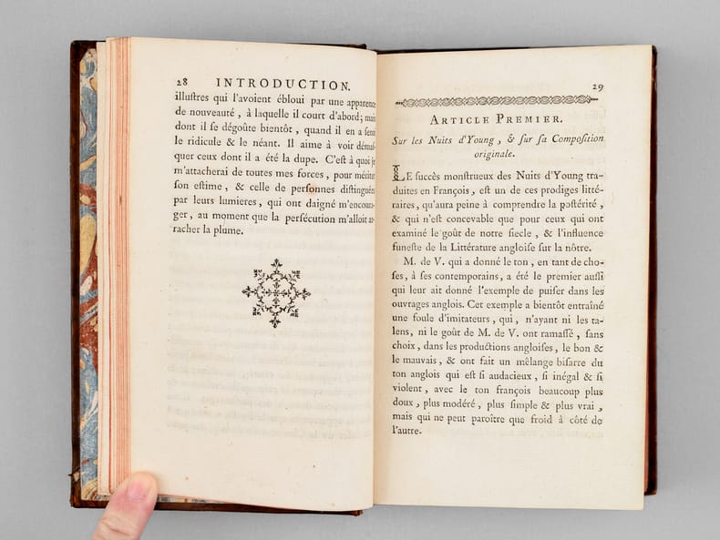 1 vol. petit in-8 reliure de l'époque plein veau marbré, dos à 5 nerfs orné, Chez Moutard, Libraire de Madame la Dauphine], Amsterdam, Paris, 1772, 2 ff., 497 pp. et 1 f. n. ch.