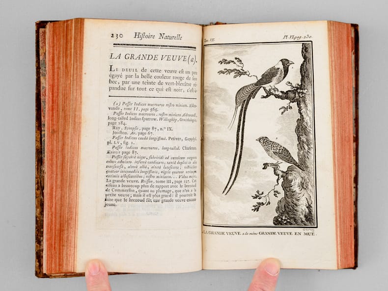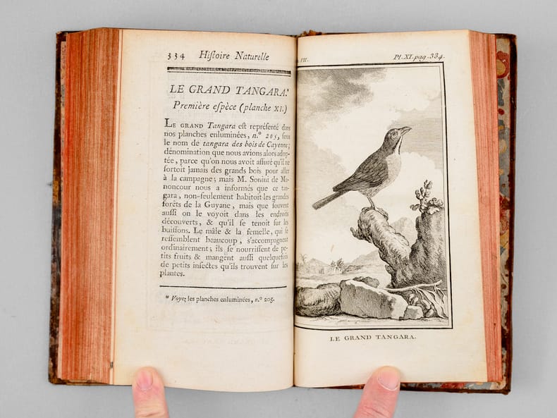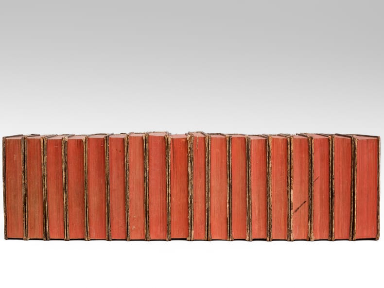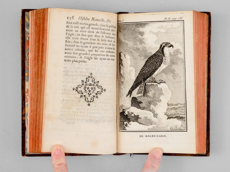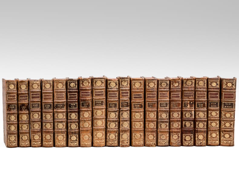 18 vol. in-12 reliure de l'époque plein veau marbré, dos à 5 nerfs orné doré (à la "toile d'araignée"), Imprimerie Royale, 1770-1785, Tome I : 3 ff., xxxvj-352 pp. avec 14 planches hors texte ; Tome II : 3 ff., 351 pp.avec 15 planches hors texte ; Tome III : 4 ff., 417 pp. avec 9 planches hors texte - Tome IV : 4ff., 405 pp. avec 18 planches hors texte ; Tome V : xxiij-456 pages avec 19 planches hors texte ; Tome VI : xij-246-clxxij pp. avec 12 planches hors texte ; Tome VII : xij-430 pp. avec 13 planches hors texte ; Tome VIII : xv-418-xlvj pp. avec 14 planches hors texte ; Tome IX : xij-472 pp. avec 15 planches hors texte ; Tome X : xiij-316-xlvij pp., avec 7 planches hors texte ; Tome XI : xx-495 pp. avec 15 planches hors texte ; Tome XII : xii-482 pp., 1f.(errata) avec 10 planches hors texte ; Tome XIII : xix-446 pp. avec 14 planches hors texte ; Tome XIV : xij-360-lxxij pp. avec 17 planches hors texte ; Tome XV : xvj-439 pp. avec 24 planches hors texte, - Tome XVI : viij-326-clij pp. avec 15 planches hors texte ; Tome XVII : viij-484 pp. avec 23 planches hors texte ; Tome XVIII : iv-134-xlvj-486 pp. avec 8 planches hors texte