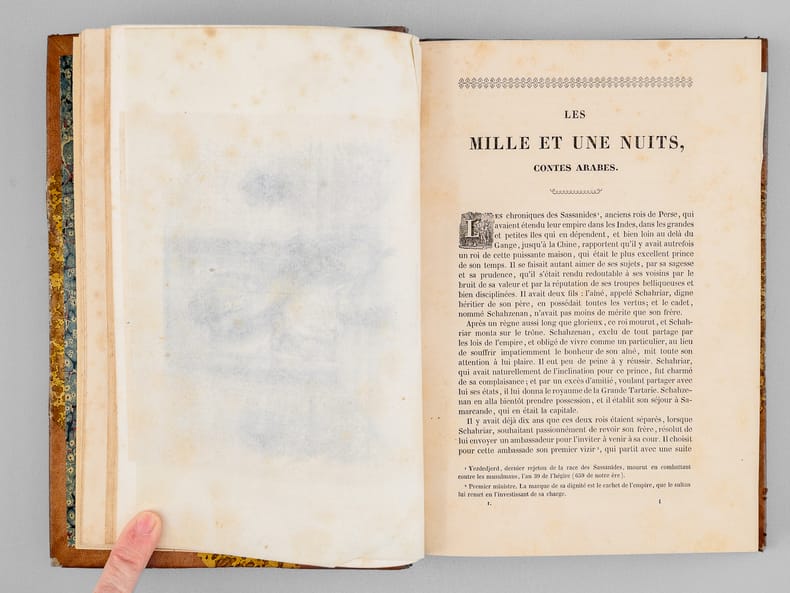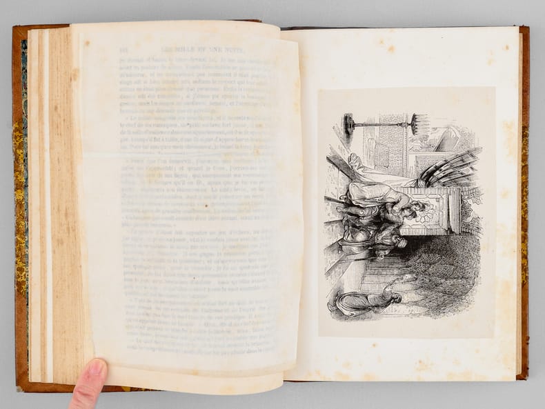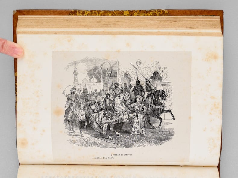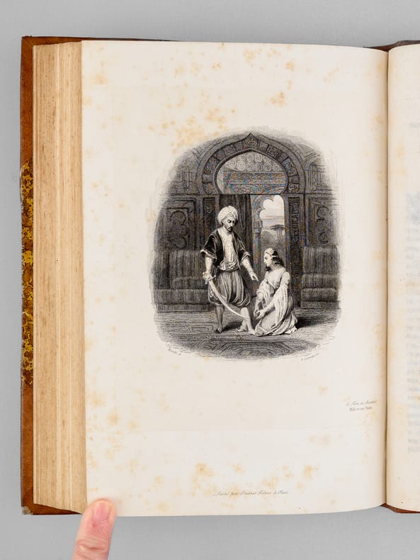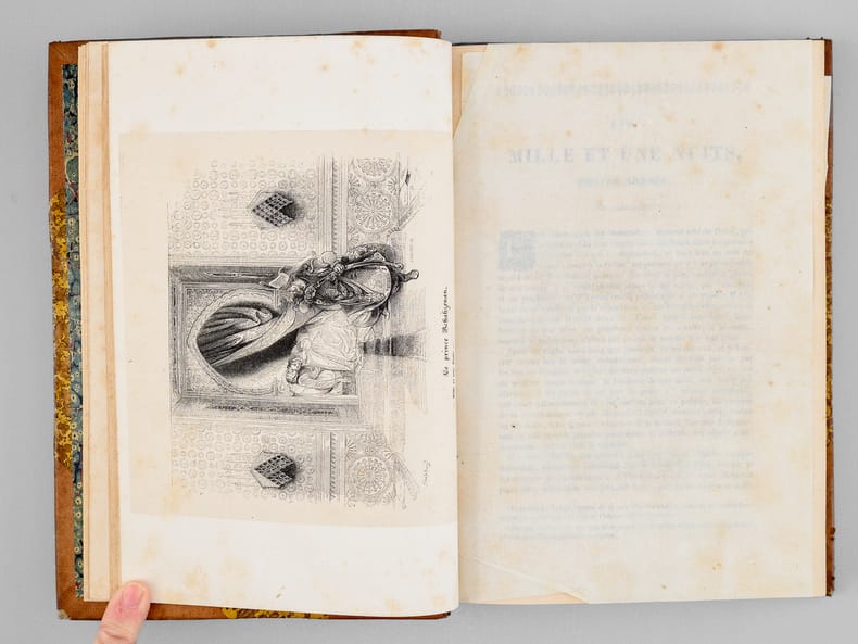 L'exemplaire contient 20 belles planches hors-texte (Vicaire en signale seulement 18). Etat très satisfaisant (petit mq. à un mors en queue, sans l'avis au relieur signalé par Vicaire, déchirure horizontale important mais sans manque à un feuillet, qq. rouss., bon état par ailleurs). Vicaire, III, 861
