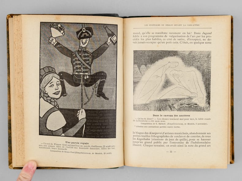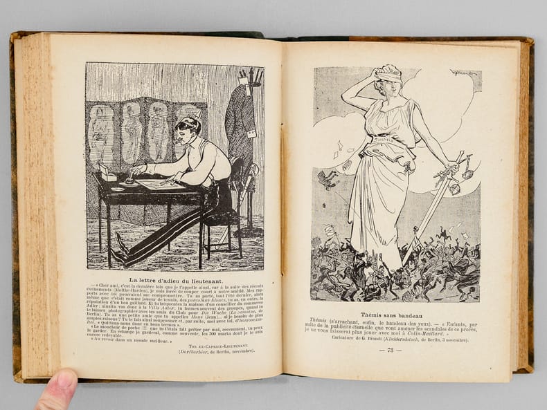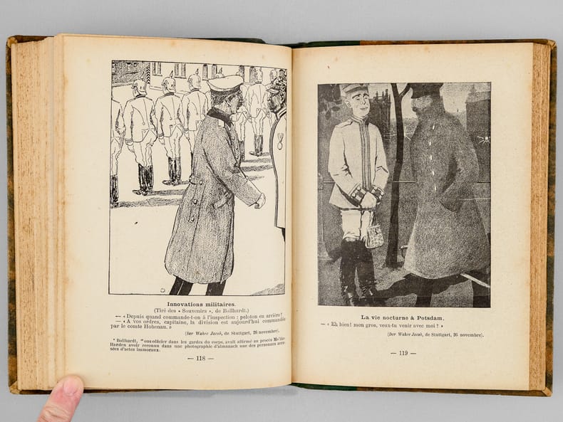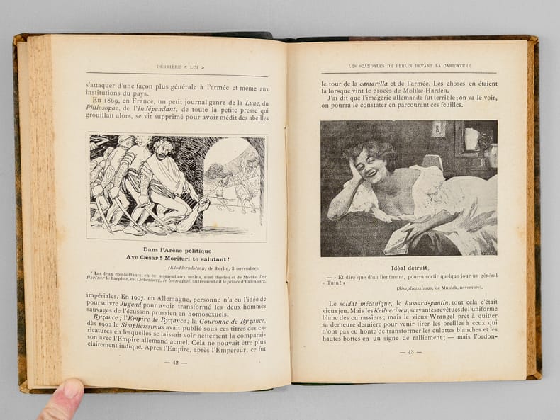 Ouvrage peu commun, typique des productions de John Grand-Carteret dans lesquelles il aborde les sujets les plus inattendus à travers la caricature et les extraits de journaux satiriques. Bon état (dos lég. passé et lég. frotté)