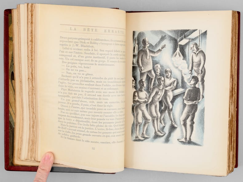 Edition illustrée de lithographies originales en deux tons de Georges Tcherkessoff, un des 800 exemplaires numérotés sur vergé de Rives, seul tirage avec 10 Japon, 30 Hollande et 25 hors commerce sur divers papiers. Une petite déchirure recollée en pied du dos très légèrement passé, deux taches sur l'étui. - Photographies et détails sur www.Edition-Originale.com -