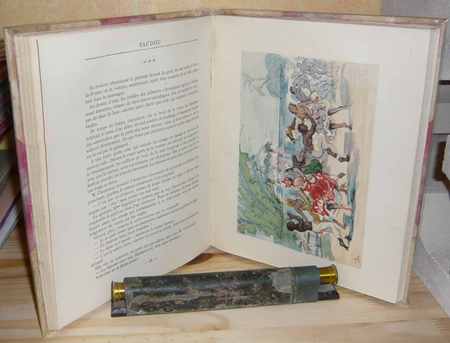 1 volume in-8° relié demi cartonnage ivoire à coins, dos lisse décoré, pièce de titre maroquin rouge, tête dorée, 135 p. + 18 hors-texte en couleurs, dessins bandeaux, culs de lampe, tirage à 1200 exemplaires, exemplaire numéro 1088. Cartonnage un peu sali et frotté sur la coupe et le mors supérieur droit.