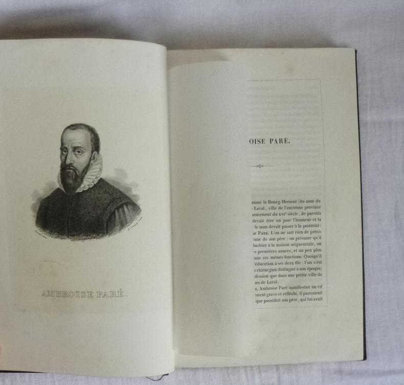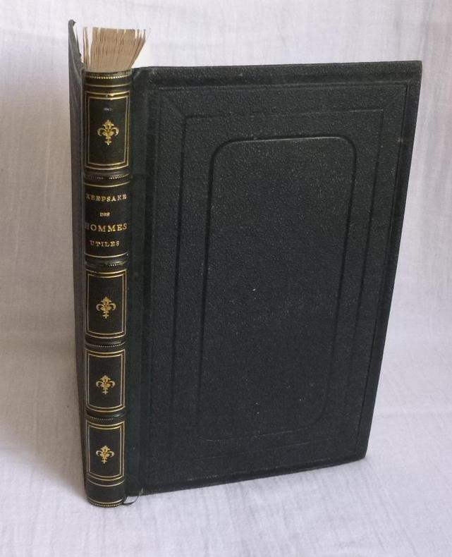 1 vol. in-8° rel. demi-chagrin bleu nuit, dos à nerfs, caissons décorés, titre doré, tranches dorées, plats de toile chagrinée noire, gardes de papier moiré, 20 portrait ht gravés sur acier et 20 vignettes sur bois, 255 p., petites mais rares rousseurs éparses, ex-libris, très bel exemplaire. Portraits de Gutenberg, Clémence Isaure, Mathieu Molé, Saint Vincent de Paul, Ambroise Paré, Riquet, Fénelon, Buffon, le duc de Penthièvre, Parmentier, Oberkampf, Brémontier, Frères Montgolfier, Barbé-Marbois, Soeur Marthe, Jacquard, Madame Élisabeth, Cuvier, Maréchal Moncey.