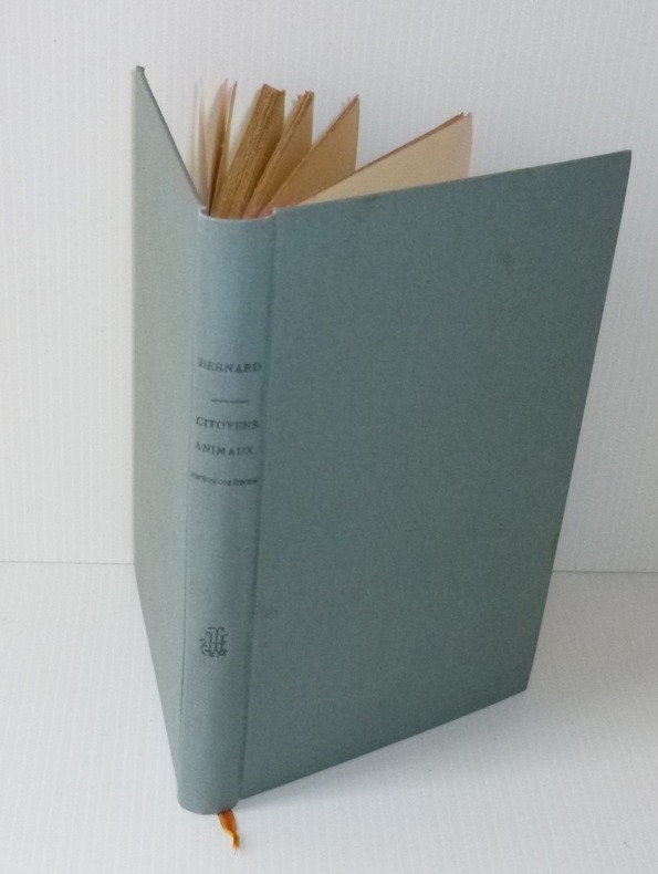 1 volume in-12° relié pleine percaline bleu clair, dos lisse, titre en noir, monogramme en noir, couverture illustrée, 190 p. Très bel état. Édition Originale.