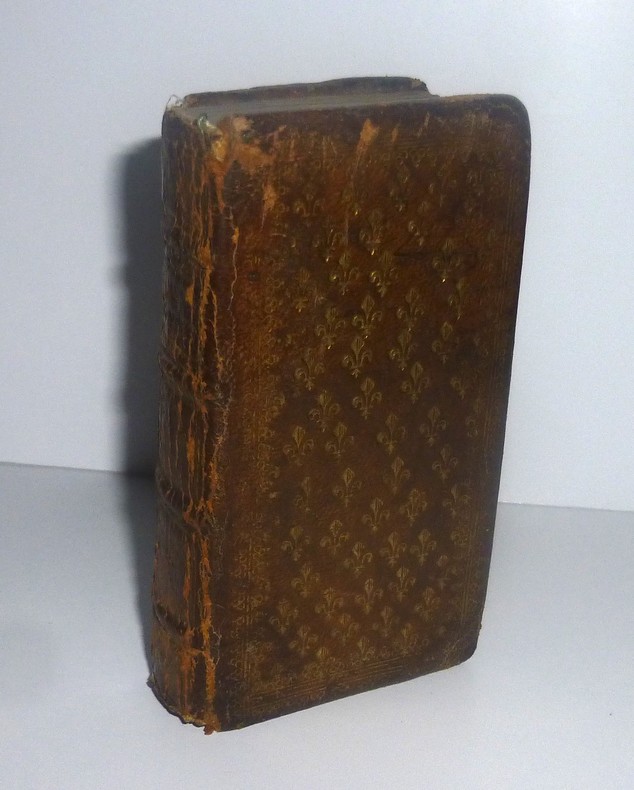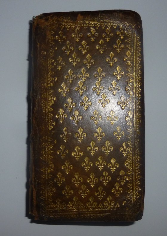 1 volume in-18° (11cm) relié plein veau marron d'époque, reliure fleurdelysée et tranches dorées, frontispice et 425 p. Adresse au frontispice. Coiffes abîmées et traces de frottement sur le dos, un coin et une coupe émoussés, bon état.