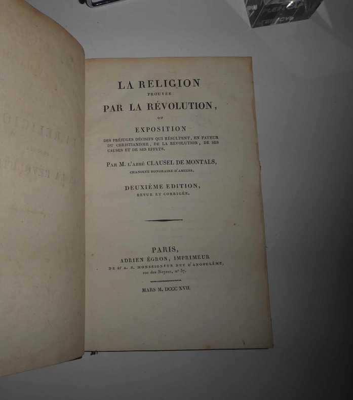 1 volume in-8° pleine basane racinée, dos lisse décoré, pièce de titre de maroquin rouge, plats aux armes de Louis XVII, coins un peu émoussés, coiffe supérieure un peu abîmée, trace de frottement sur le dos nonobstant très bon état. VIII, 213 p.