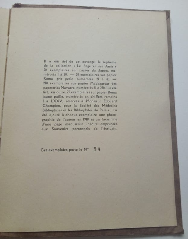 Paris Lesage 1925 In12 - broché - 45 pages + 1 fac-similé et 1 photographie contecollée - Ex. Numéroté 54 su papier Madagascar .