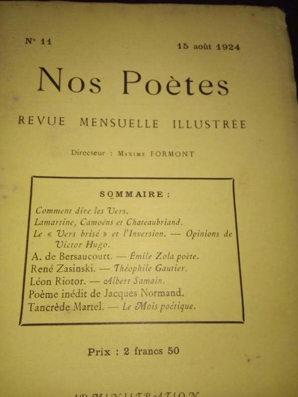 Paris Lemerre 1924 In8 - broché - 32 + XV pages ( pagination continue ) - rousseurs éparses - Revue ditrigée par Maxime Formont et pilotée par les éditions Lemerre - Vois Sommaire sur les photographies .- Legers manques au 1er plat et dos .