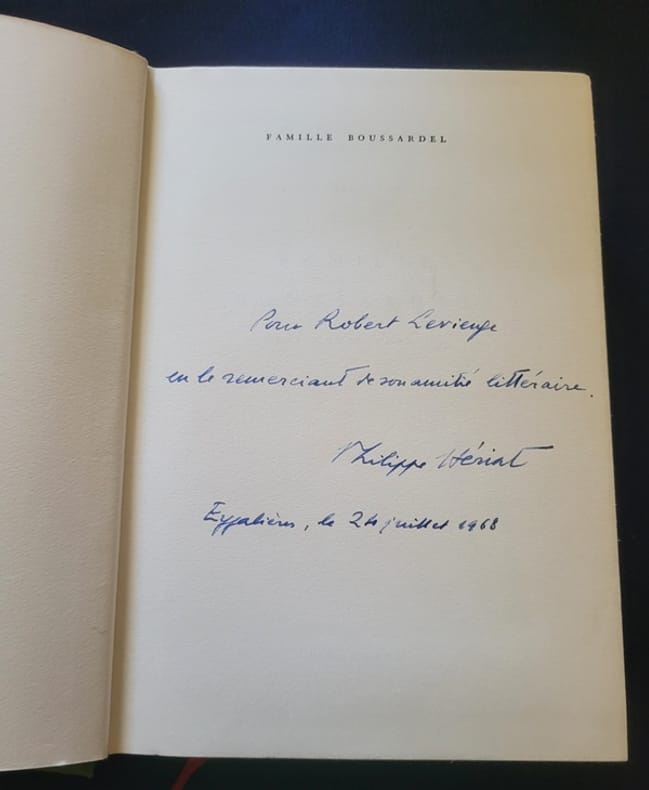 Sommaire: Philippe Hériat par Pierre Gascar- Philippe Hériat et son oeuvre par Léonce Peillard- Famille Boussardel. Classification Dewey : 928-Ecrivains