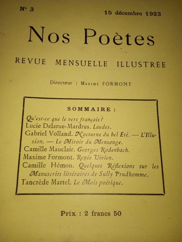 Paris Lemerre 1923 In8 - broché - 32 + XV pages ( pagination continue ) - rousseurs éparses - Revue ditrigée par Maxime Formont et pilotée par les éditions Lemerre - Vois Sommaire sur les photographies .
