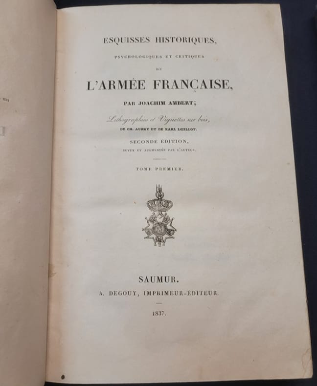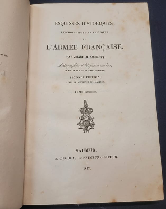 Saumur Degouy 1837 Seconde édition - Grands in8 - demi chagrin - dos à nerfs ornés - 355 & 398 pages + tables + liste des souscripteurs - 16 lithographies en tète de chaque chapitre - Joachim Ambert fut général et représentant du Lot a la constituante .